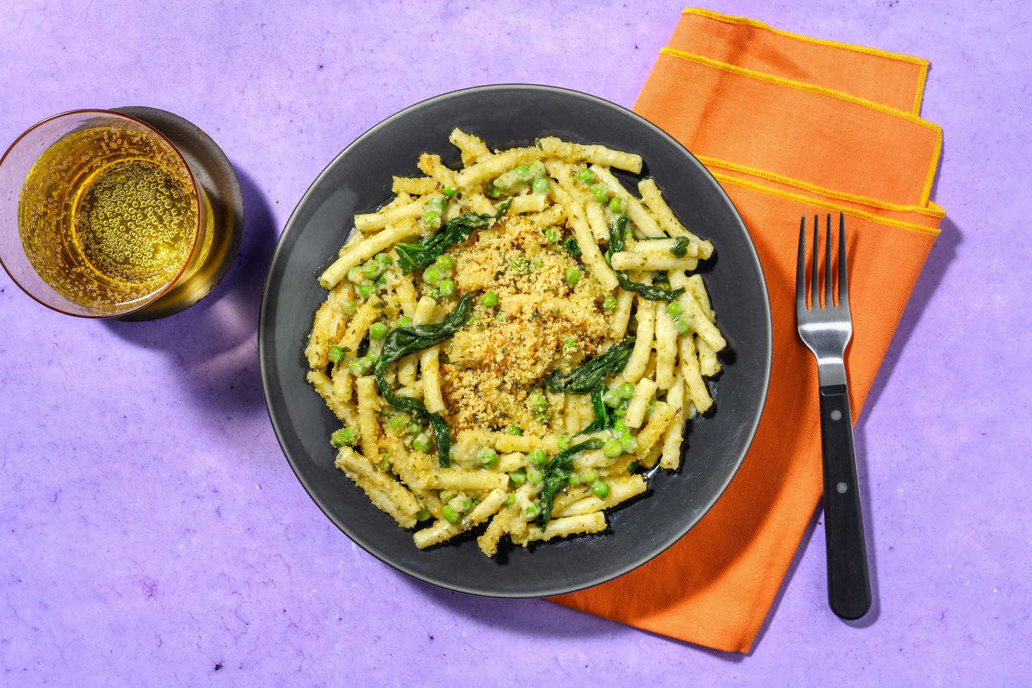 Once the duck has rested, thinly slice it widthways. Reheat the sauce, if needed. Toss the minty peas together with the roasted potatoes and divide between your plates. Serve the sliced duck alongside with the sage and apple sauce drizzled over and the remaining mint sprinkled on top. Share the pea shoot salad between the plates to finish. Enjoy!