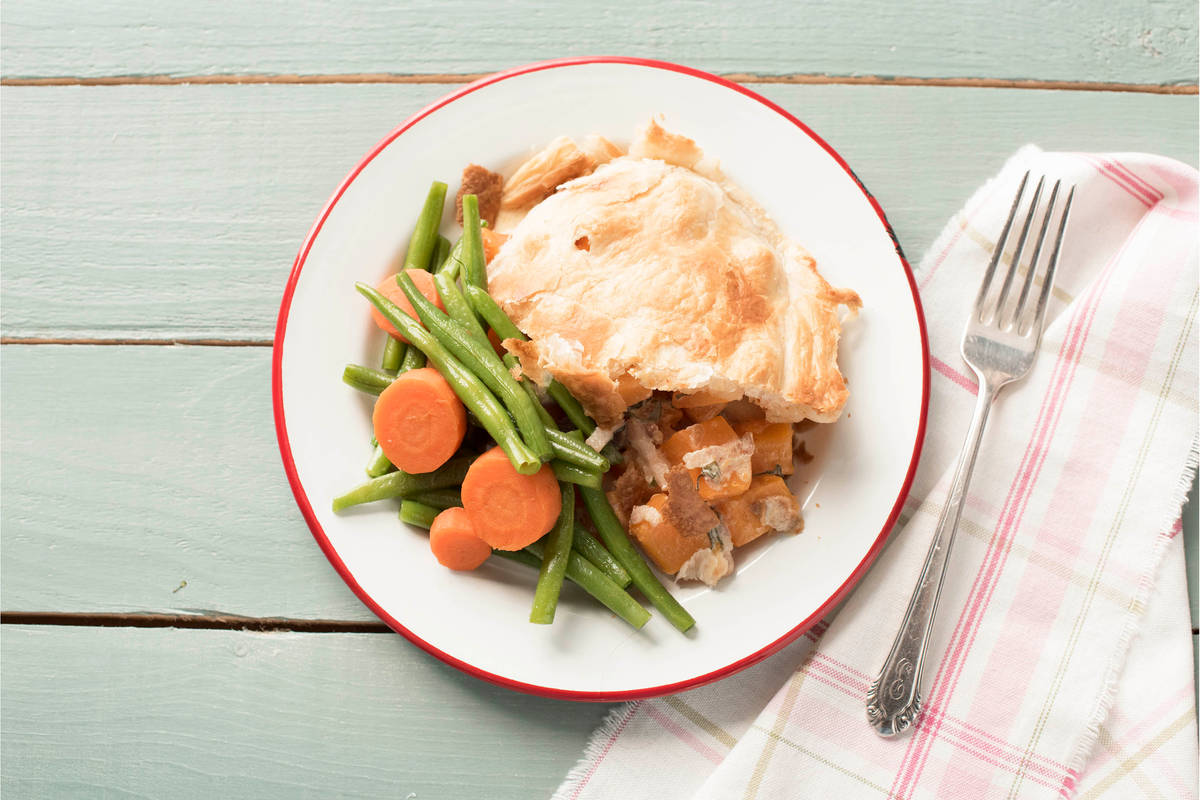 This delicious pie is comfort food at its best. This recipe combines the sweet, creamy flavours of butternut squash with peppery sage and meaty pancetta, complemented with a side of crunchy honeyed carrots and beans. Our tummies are grumbling already...