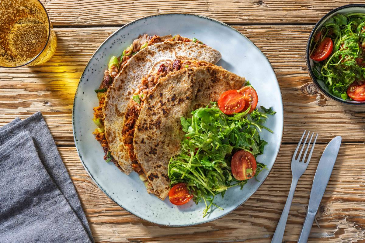 Serve the quesadillas alongside plenty of rocket salad. Enjoy!