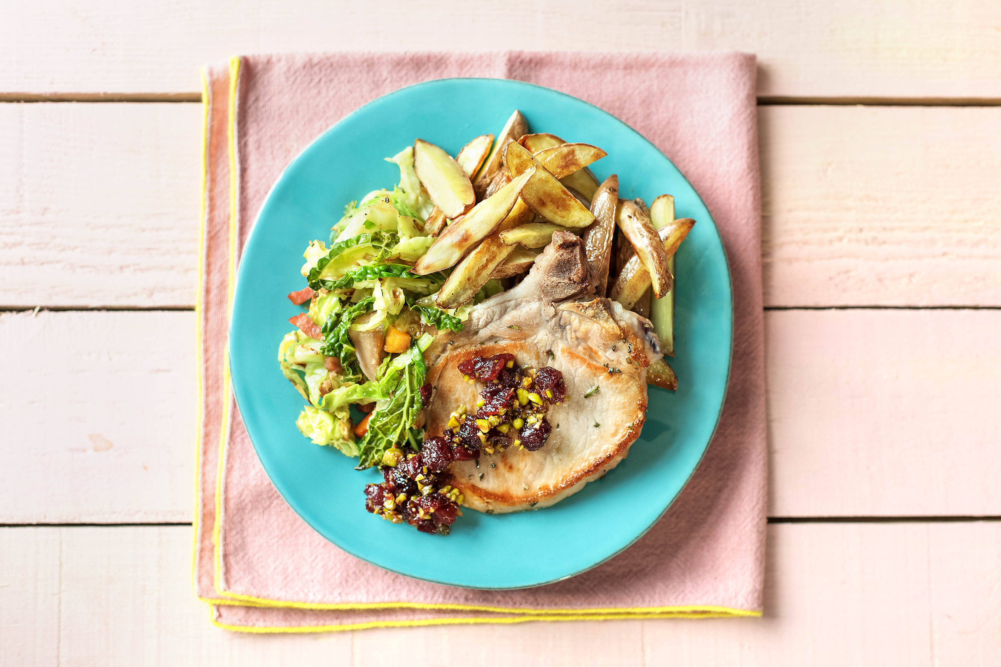 Rich, juicy duck pairs beautifully with a sweet, fruit-based sauce—it’s a combo that’s about as classic as can be. Our chefs decided to take things a step further by adding a bit of ancho chili powder into the mix, which creates this smoky, sultry mystique. The excitement only continues with the sides: pistachio-studded rice and tender roasted carrots. This is the sort of dish we’d want to make when we’re feeling a little bit fancy.