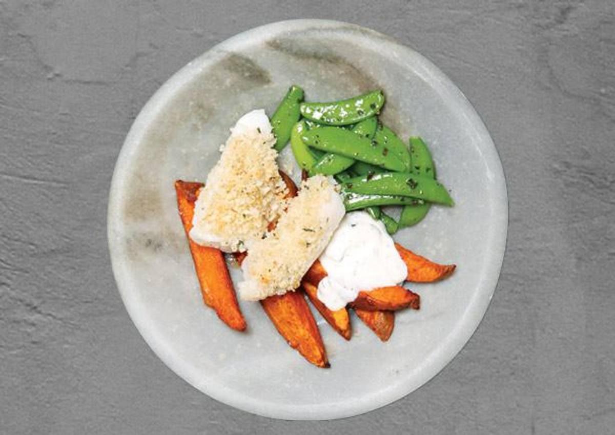 with Sweet Potato Wedges and Minted Snap Peas