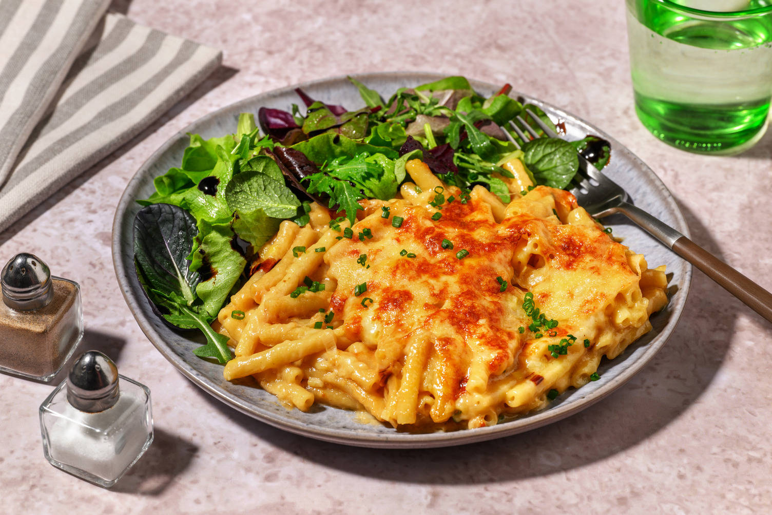 Season the chicken with a pinch of salt and pepper. Lay them in your hot frying pan skin-side down. Cook until the skin is golden, 5-6 mins, then turn over and cook for another minute. Transfer to a baking tray skin-side up) and roast in your oven for 20 mins. Once cooked, remove from your oven and leave to rest for 5 mins. TIP: The chicken is cooked when no longer pink in the middle. Don't wash your pan, we'll use it again.