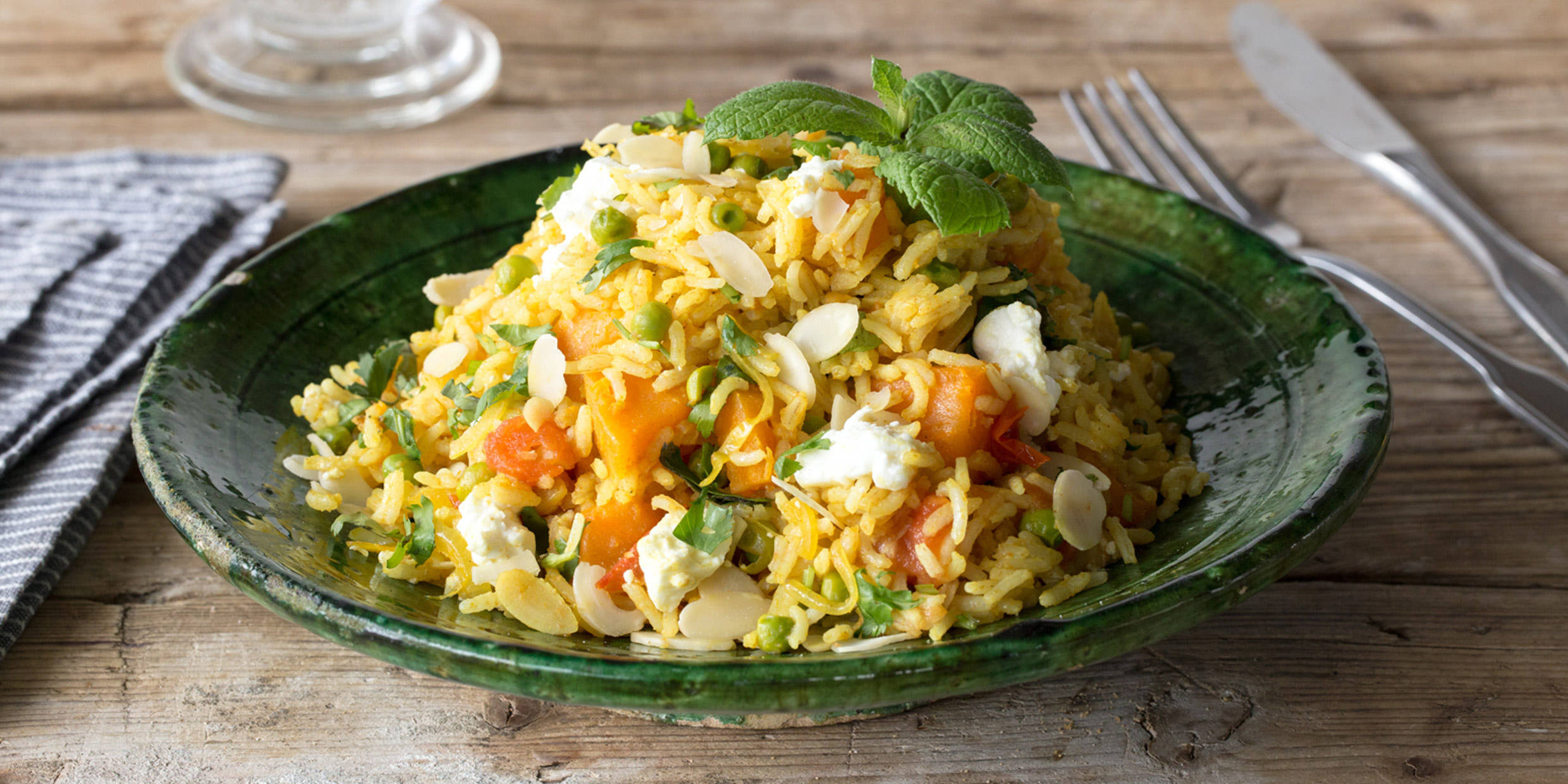 - Crumble over the feta. Sprinkle over the crispy onions to finish.