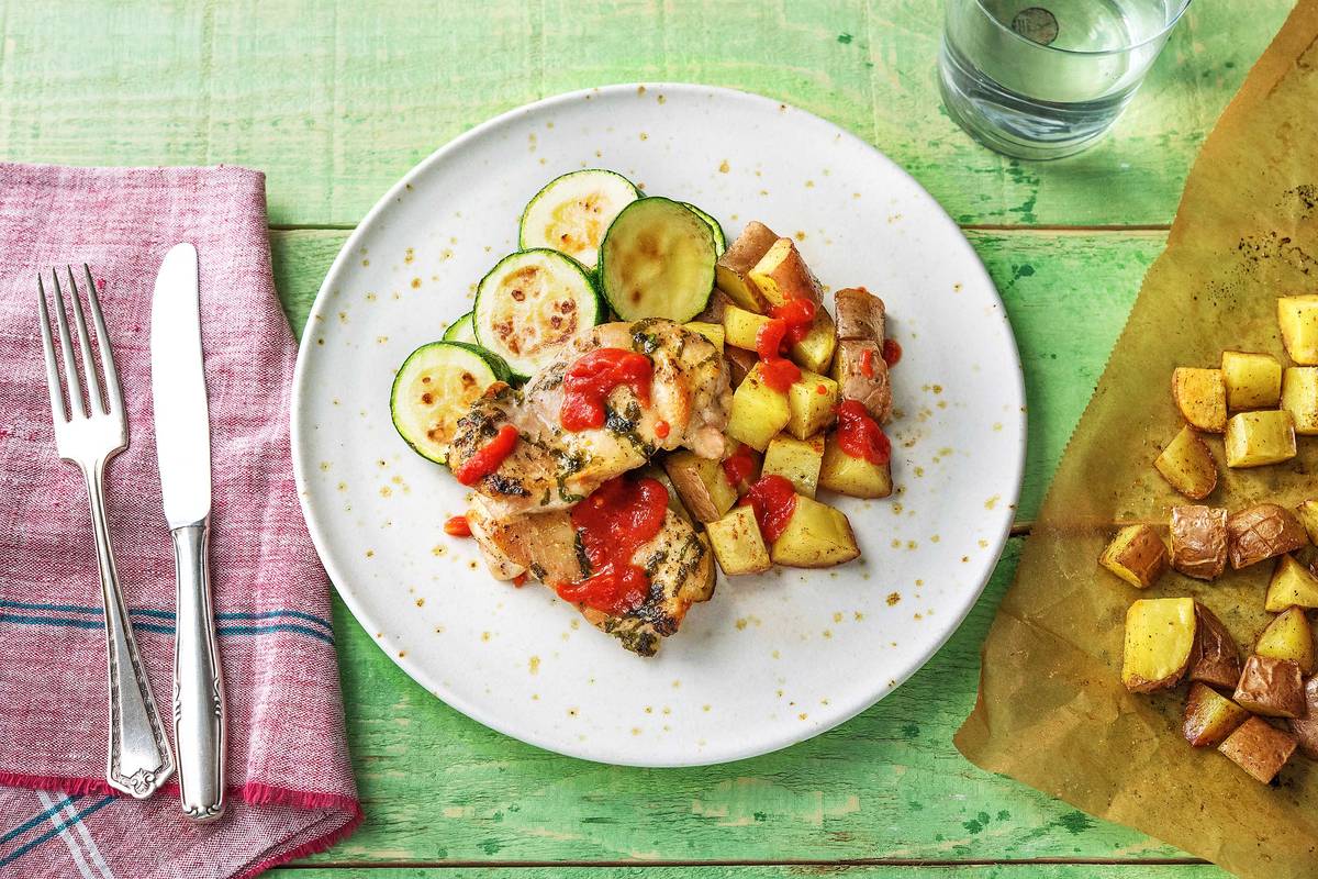 This delicious recipe was inspired by a visit to a tapas restaurant in Dundee! Patatas bravas is a typical Spanish dish which consists of sautéed potatoes dressed in a spicy tomato sauce. For this meal, we've created a tapas style dinner with herby cumin chicken, charred courgettes and the game changing patatas bravas. Enjoy!