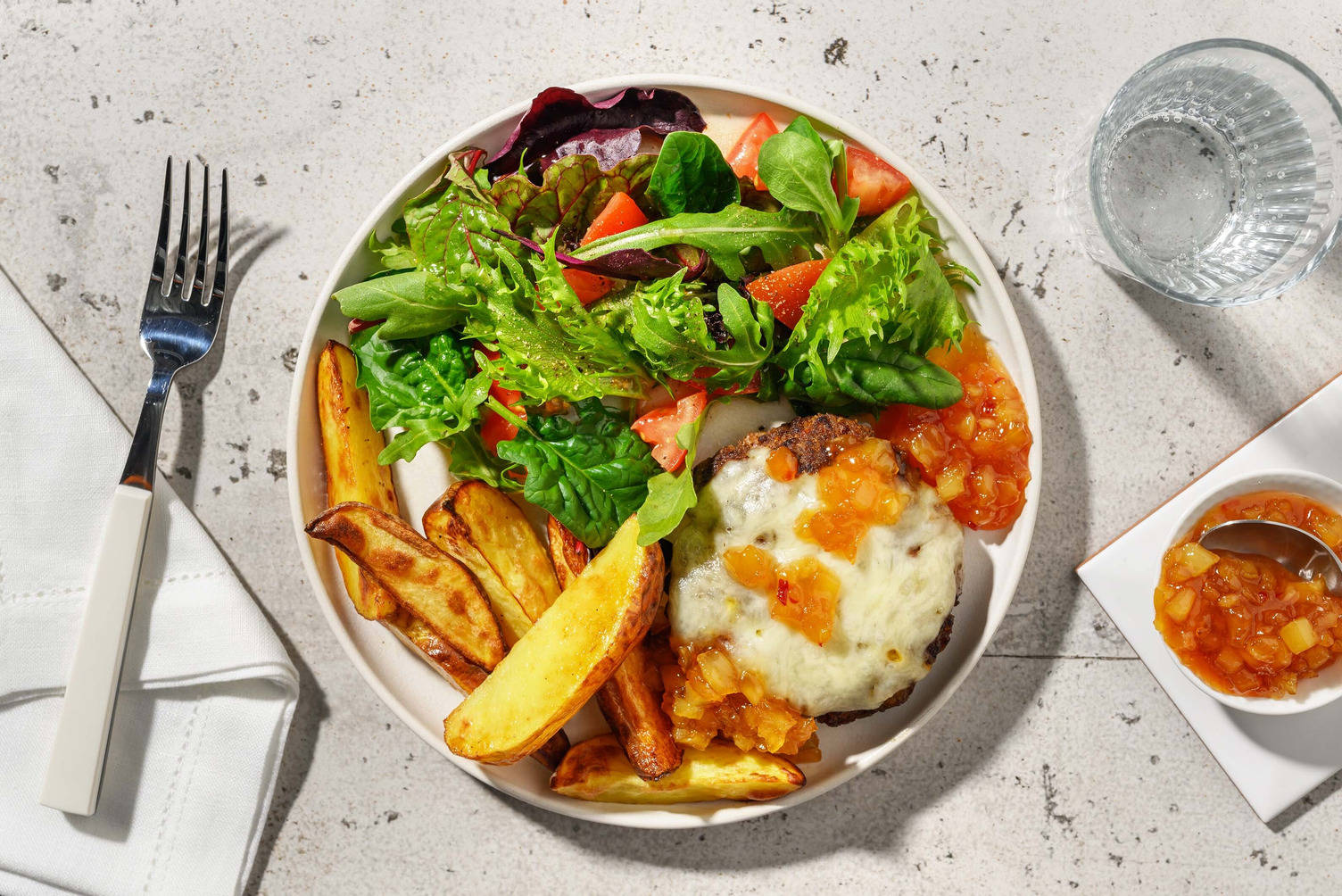 b) Top with half the granola, followed by half the pineapple chunks and half the mango chunks.
