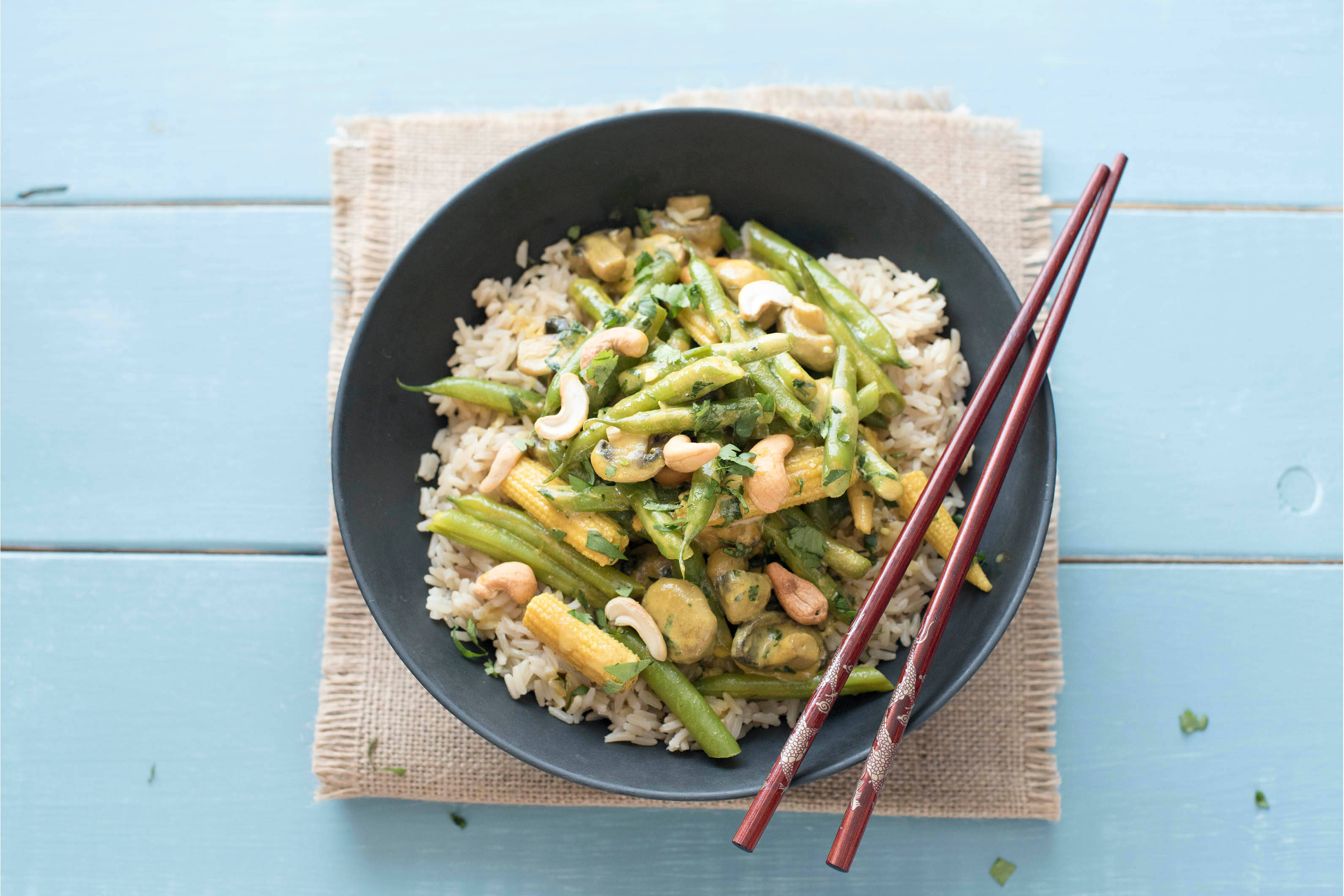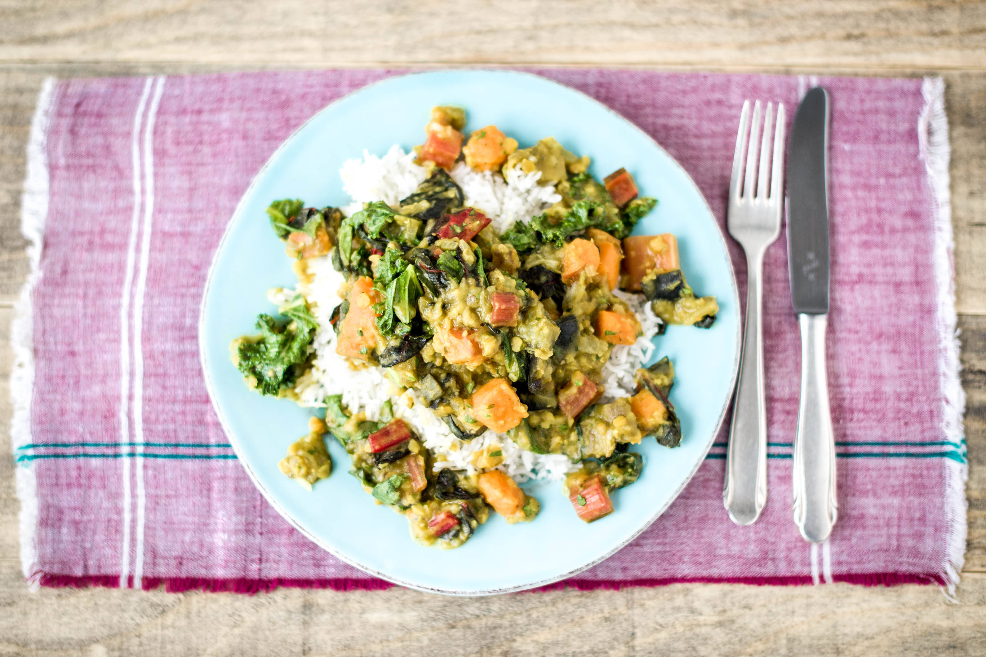 a) Meanwhile, pour the coconut milk into a medium pan and pop onto medium-high heat.