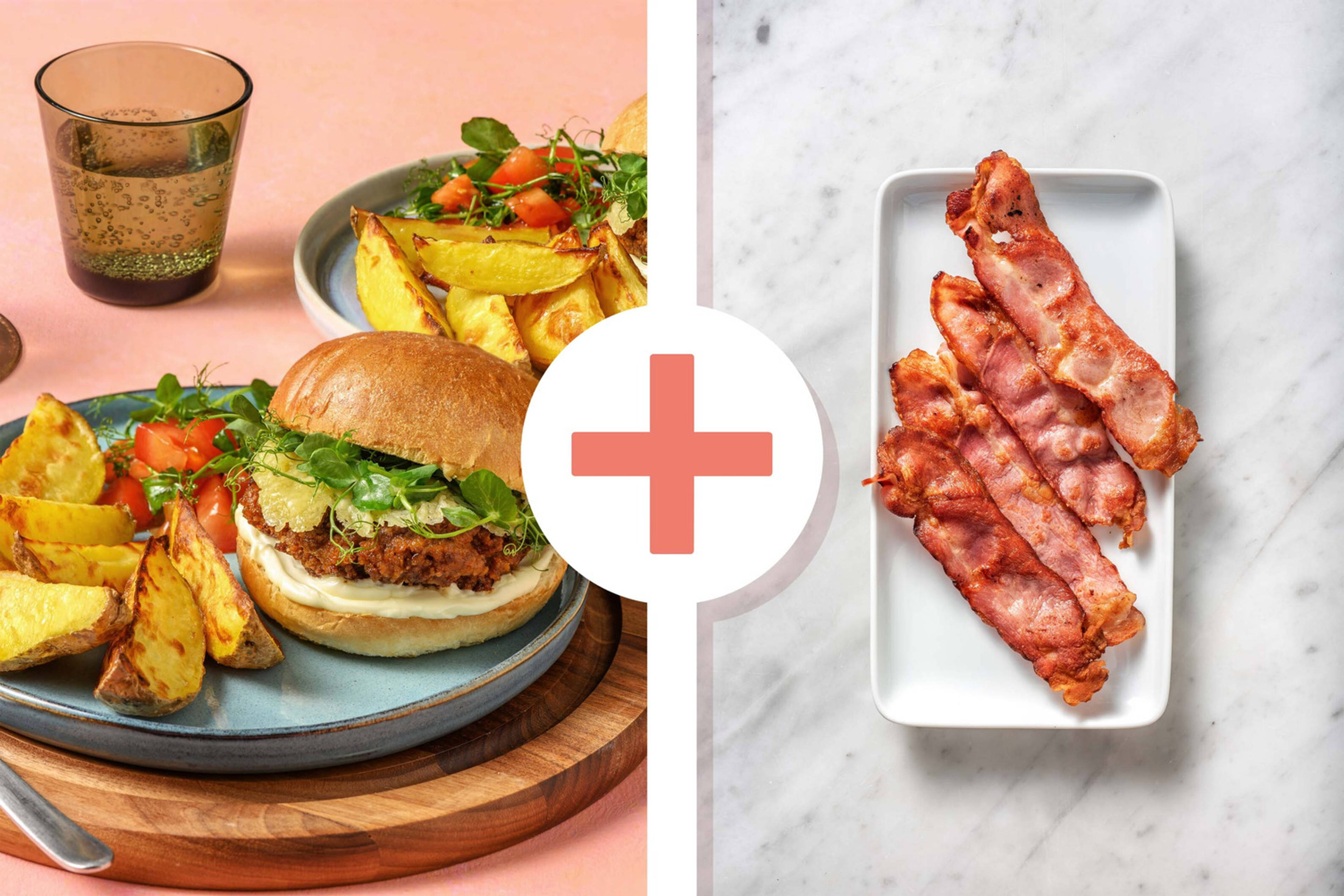 Heat a drizzle of oil in a frying pan on medium-high heat. Once the oil is hot, lay in the bacon rashers and fry until crispy and brown, 3-4 mins on each side. Transfer to a plate lined with kitchen paper. IMPORTANT: Wash your hands and equipment after handling raw meat. Cook bacon thoroughly.