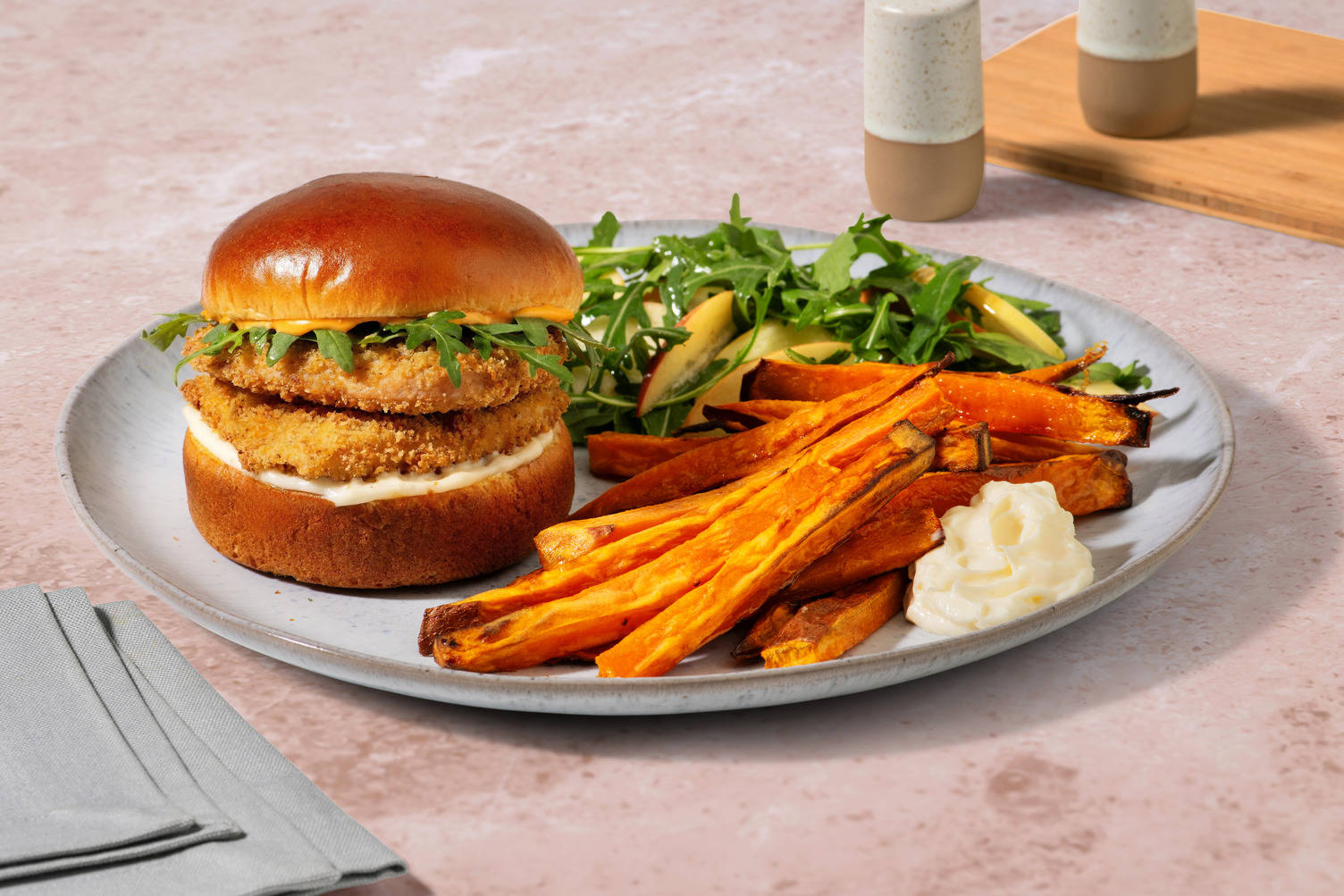 a) Lay your cheesy egg parcels onto the base of each bun, followed by 4 rashers of bacon each.