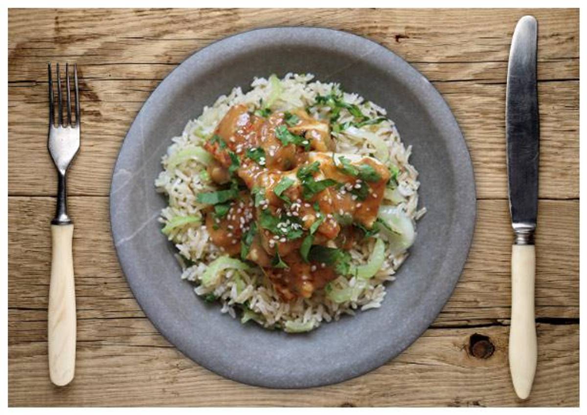 Get your lab coat out because our chefs Patrick and Rachel decided to get Heston Blumenthal on some tofu for this recipe! If you want to take your tofu to the next level, the first trick is to cube it and then soak it in hot salty water for 15 minutes. The process of osmosis (#GCSEnostalgia) draws out the moisture. After that press it firmly, but gently, between kitchen towel to soak up as much water as possible. Next (wait for it…), use a hairdryer to get it even drier and then finally coat it in seasoned flour before frying. Prizes for the best hair dryer action shot on our Facebook page!