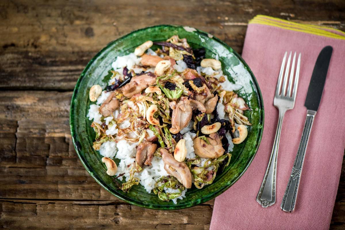 Fluff up your rice with a fork and serve with your teriyaki chicken and a sprinkling of toasted cashew nuts.