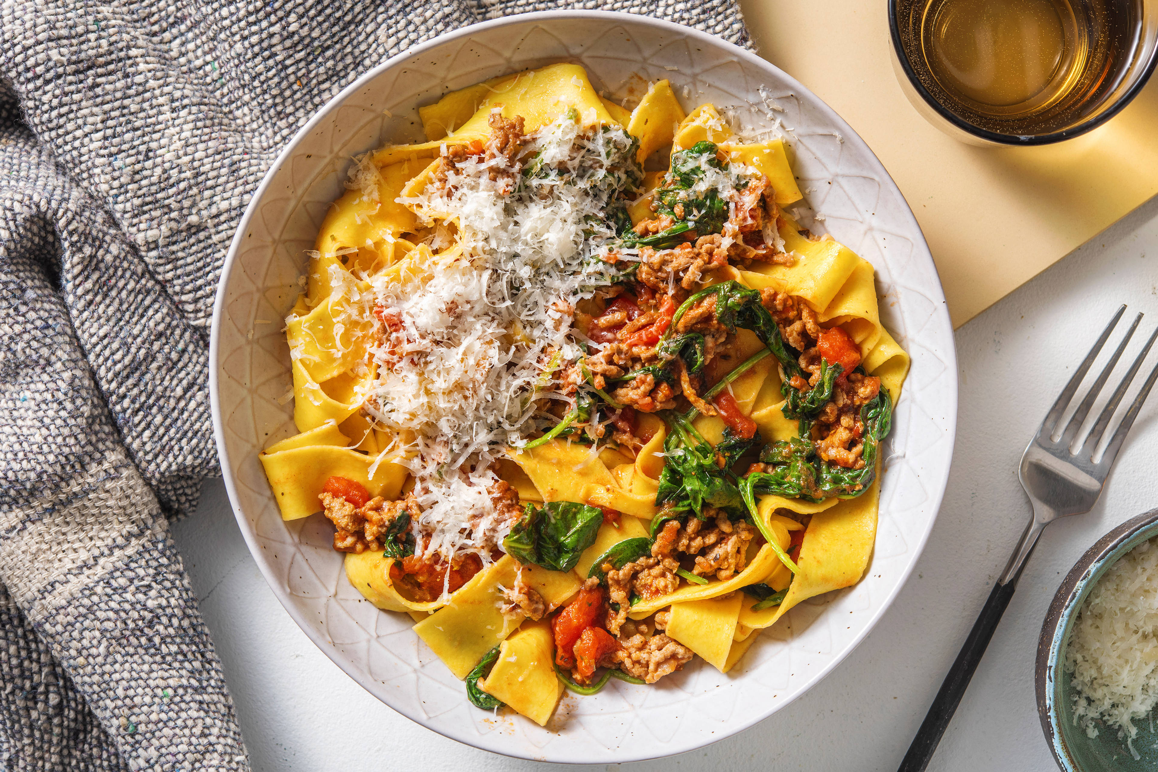 a) Tip the spaghetti into the sauce and gently stir together until everything is nicely combined. b) Serve in bowls, sprinkle over the remaining parsley and tuck in! ENJOY!